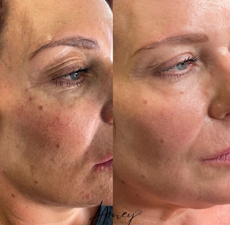 Each treatment is completely customisable. Depending on your goals, serums can include hyaluronic acid for hydration, vitamins for skin health, peptides for anti-ageing, and even botulinum toxin in micro-doses (known as skin tox) for oil control, redness, and pore refinement.